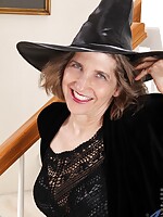 - Sexy housewife Meredith Johnson dildos her older pussy.