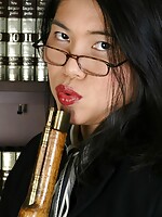 - Busty mature Asian babe Lucy Page fingers her pussy.